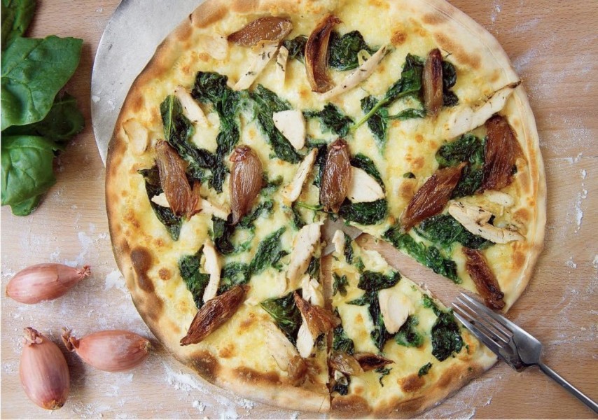 | Calabrese salami spianata picante, pomidory, kapary, oliwki, szpinak, oliwa czosnkowa, cebula | 80 zł |