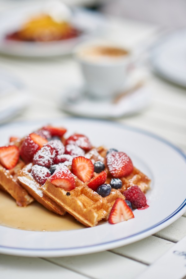 | Gofry z owocami (miód/ syrop klonowy) | 45 zł |