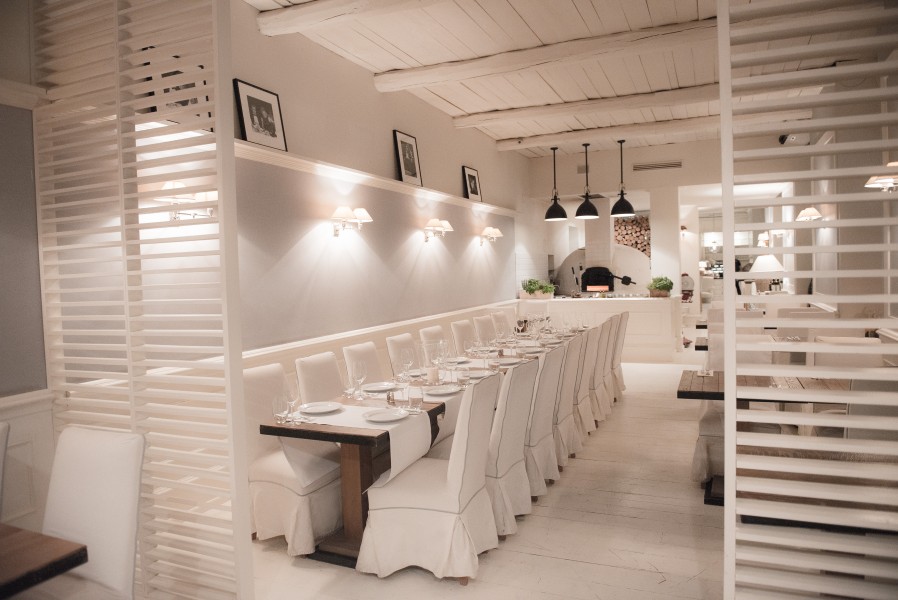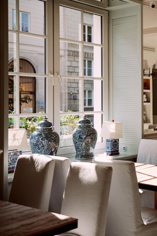 We wnętrzach Flaming Restaurant królują jasne kolory oraz mnóstwo światła. W aranżacji inspirowano się stylem Hampton, stąd zestawienia kolorystyczne cenione przez spragnionych relaksu nowojorczyków: biel, beż oraz granat.